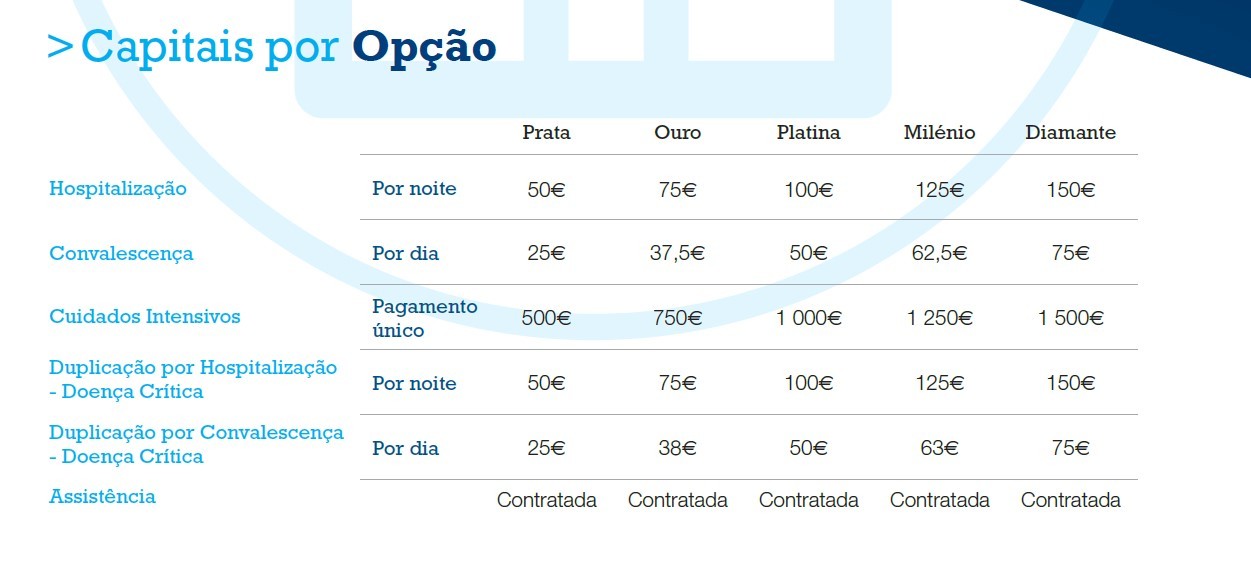 Durante um período de hospitalização, que esteja coberto por este seguro, e na eventualidade de ser necessária a transferência para uma Unidade de Cuidados Intensivos, é pago, adicionalmente, um capital único, consoante a opção contratada.